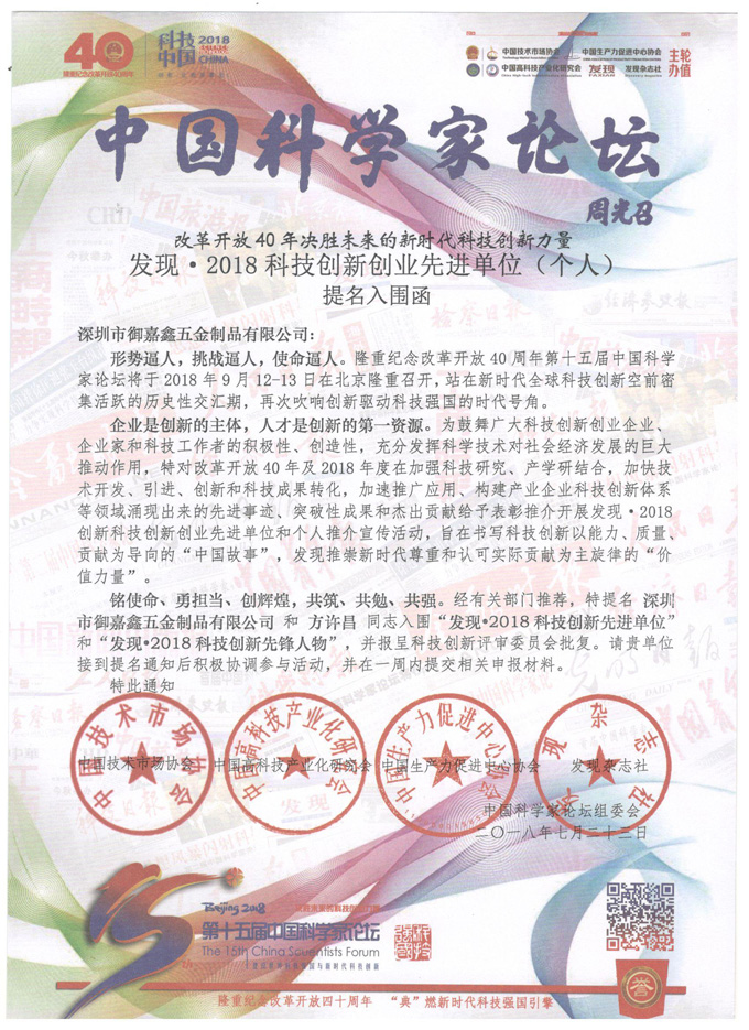 The 15th China Scientists Forum will be held in Beijing from September 12 to 13, 2018. Mr. Fang Xuchang, chairman and general manager of Shenzhen Yujiaxin Hardware Co., Ltd. will also be invited to participate in this forum. Tಌogether with people from all walks of life, we will exchange ideas and display achievements, and actively contribute to the development of scientific innovation in China.